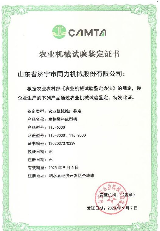熱烈祝賀山東省濟(jì)寧市同力機(jī)械股份有限公司11J-6000、11J-3000、11J-2000產(chǎn)品通過(guò)了山東省農(nóng)機(jī)鑒定站的農(nóng)業(yè)機(jī)械推廣鑒定,獲得了山東省農(nóng)業(yè)機(jī)械試驗(yàn)鑒定證書(shū)。